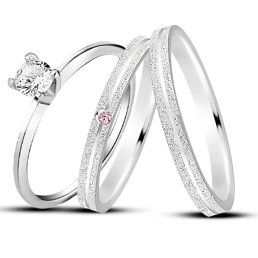 Aliança de Prata 950 Cravejada  Brilho Eterno Elina Com Anel Solitário de Brinde Aliança só Love