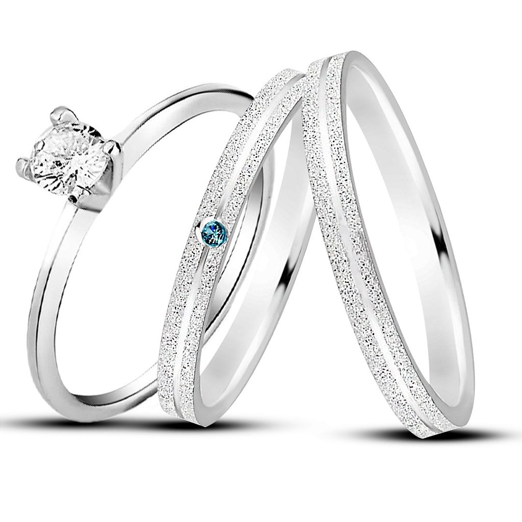Aliança de Prata 950 Cravejada Brilho Eterno Elina Com Anel Solitário de Brinde Aliança só Love