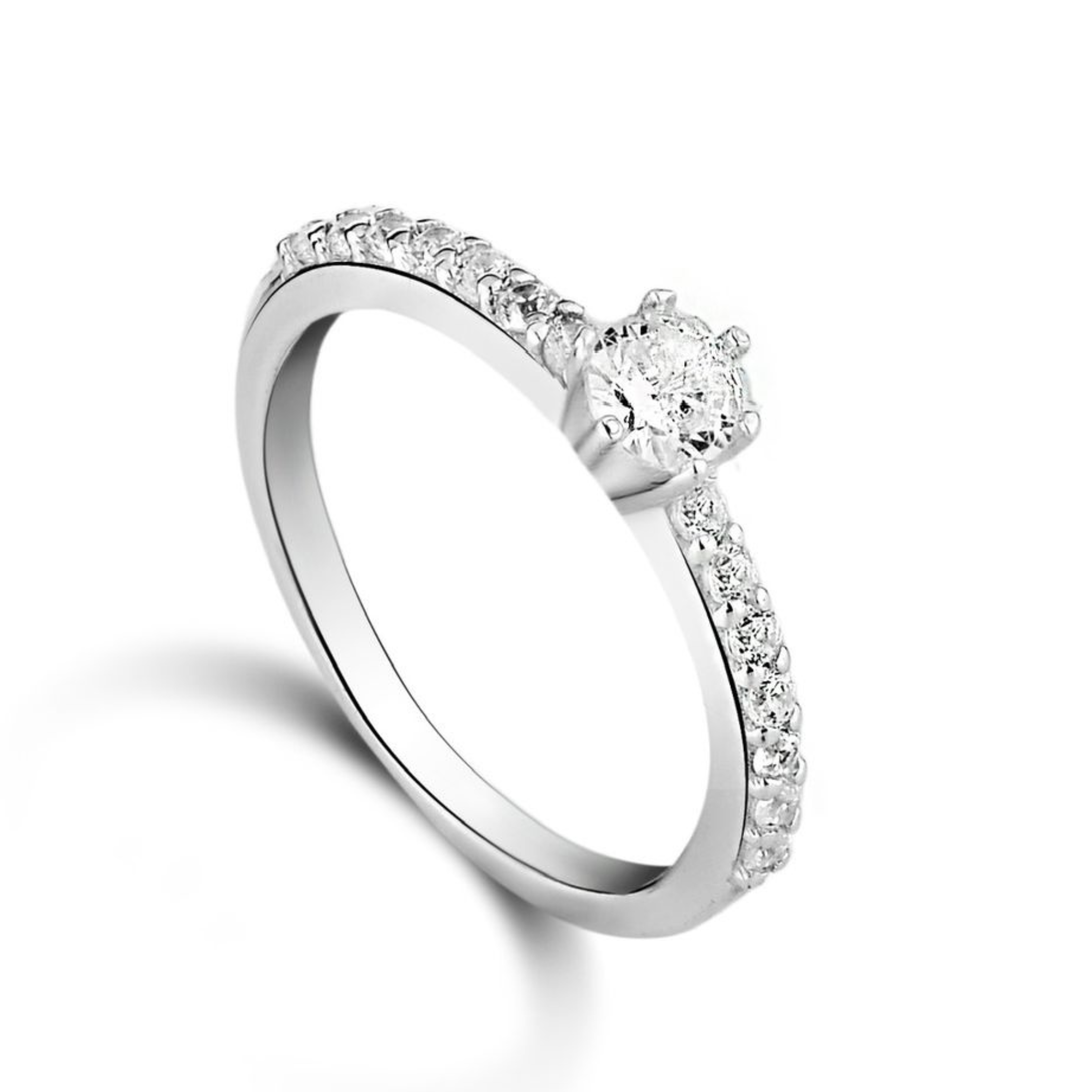 Sua pedra central reluz como o símbolo do amor verdadeiro, enquanto as pequenas zircônias cravejadas no aro representam todos os instantes que tornam uma história única: o primeiro olhar, o primeiro beijo, a certeza do “para sempre”.